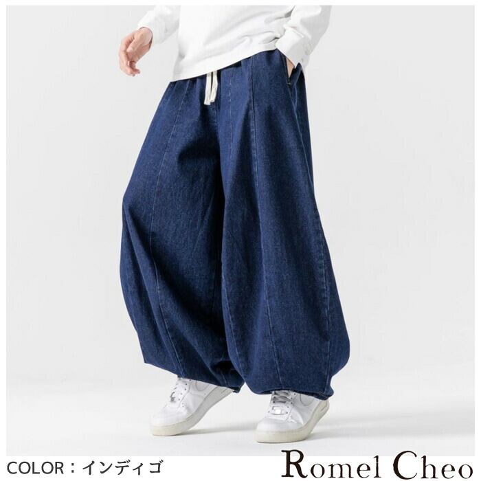 【関連キーワード】デニムワイドパンツ メンズ タイパンツ デニム サルエルパンツ ビッグシルエット バルーンシルエットパンツ デザインパンツ ダボパン ハーレムパンツ オーバーサイズ メンズ モード系 ストリート きれいめ 原宿系 サロン系 ファッション ロメルチェオ