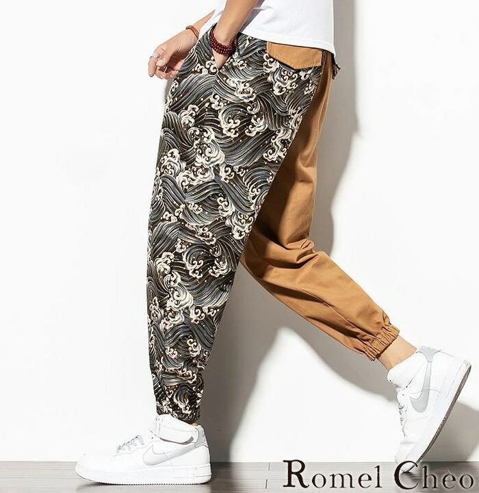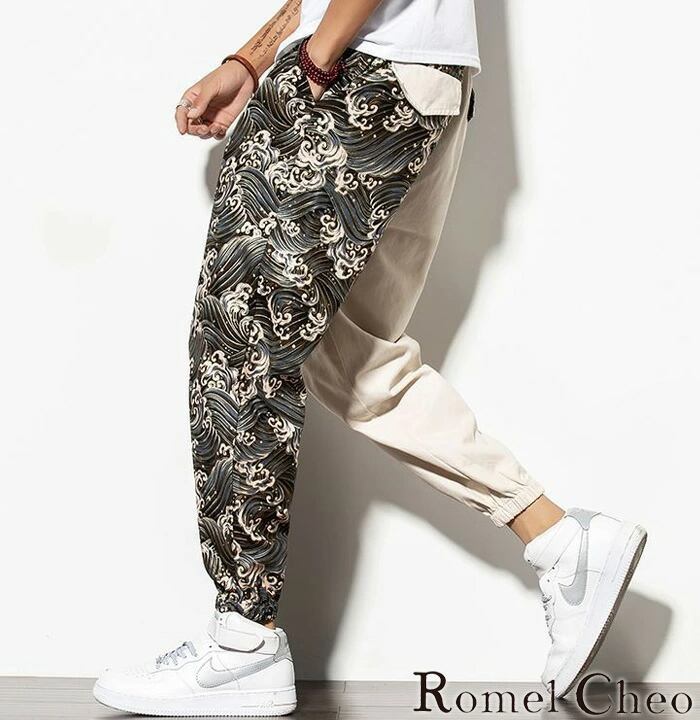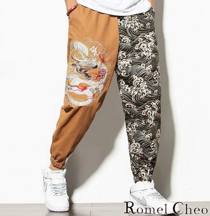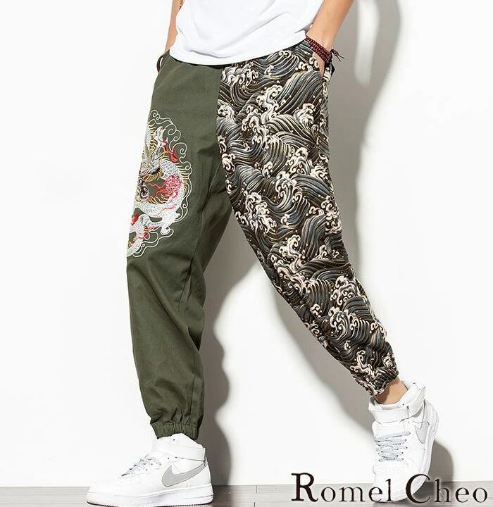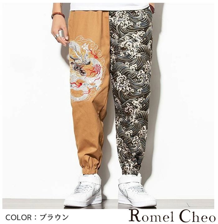 【お支払い確認後20日以内発送】RomelCheo 龍刺繍アシメデザインパンツ ジョガーパンツ アシメパンツ トラックパンツ デザインパンツ ハーレムパンツ 和風パンツ 刺繍パンツ 個性派ファッション アジアン エスニック メンズ モード系 ストリート きれいめ 原宿系 サロン系 ファッション ロメルチェオ