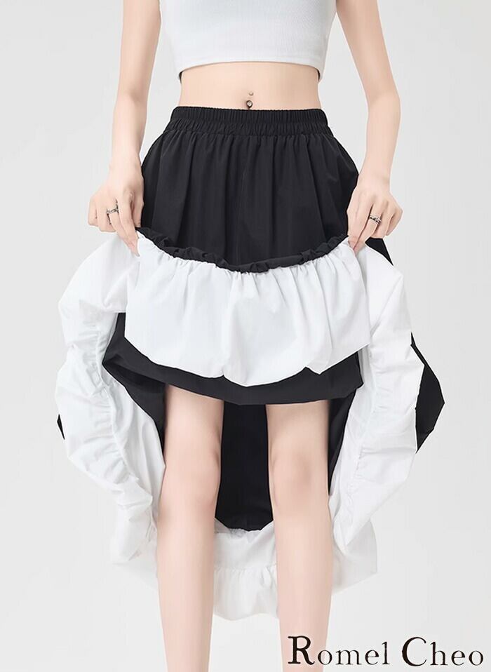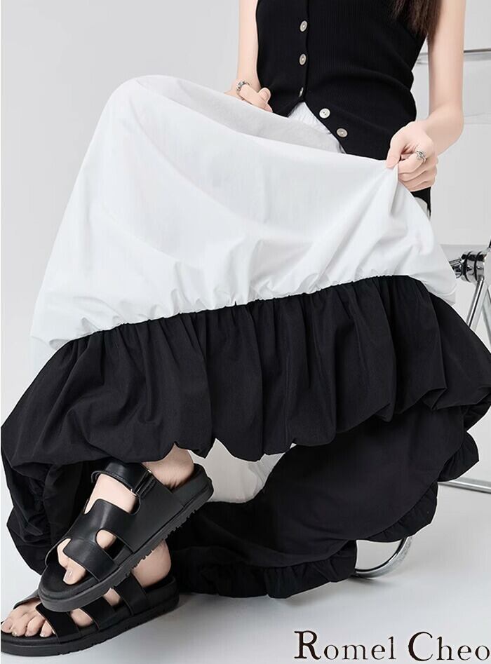 【お支払い確認後20日以内発送】RomelCheo 涼しい レイヤードスカート スポーティー アンブレラスカート ハイウエスト Aライン 切り替え ロングスカート マキシ丈スカート バイカラースカート フェミニン 大人可愛い レディース モード系 ストリート きれいめ 原宿系 サロン系 ファッション ロメルチェオ