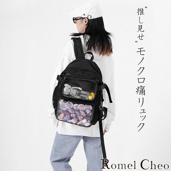 【お支払い確認後20日以内発送】RomelCheo ストリート系モノクロ痛リュック 推し見せバッグ 推し見せリュック 推し活バッグ デザインバッグ クリアバッグ リュック ウエストポーチ 鞄 ファッション小物 地雷系 サブカル系 レディース モード系 ストリート 原宿系 ファッション ロメルチェオ