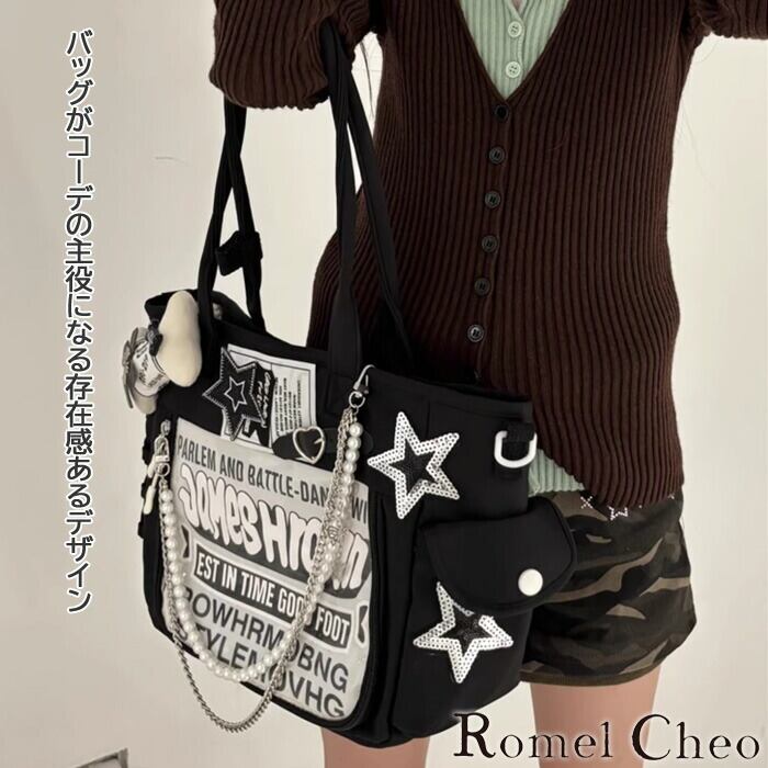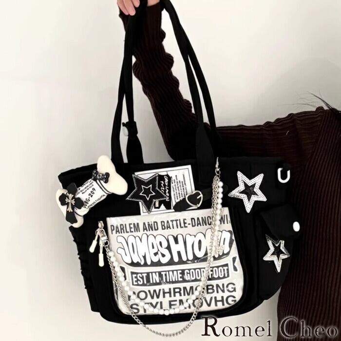 【お支払い確認後20日以内発送】RomelCheo Y2Kビッグトートバッグ デザイントート デコレーションバッグ ビッグバッグ ショルダーバッグ 鞄 大容量 Y2Kファッション ファッション 小物 地雷系 サブカル系 個性的 レディース モード系 ストリート 原宿系 ファッション ロメルチェオ