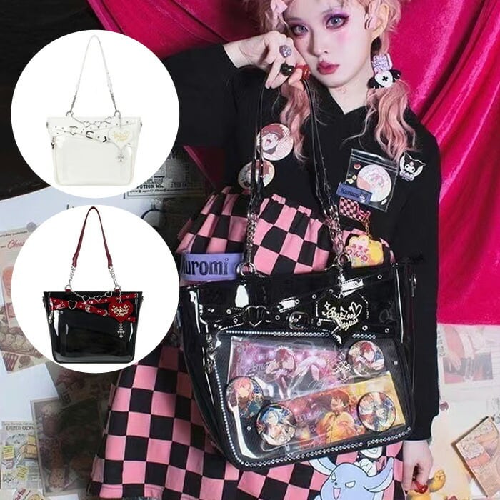 【お支払い確認後20日以内発送】RomelCheo ゴスロリ推し活痛バッグ クリアトートバッグ 推し活バッグ 推し活トートバッグ 推し見せバッグ デザインバッグ 鞄 ファッション小物 ゴス ロリータ V系 地雷系 サブカル系 レディース モード系 ストリート 原宿系 ファッション ロメルチェオ