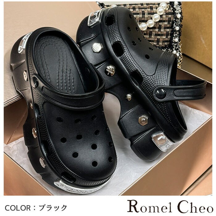 【お支払い確認後20日以内発送】RomelCheo 厚底メタルデコれるサンダル 厚底サンダル デコレーションサンダル カジュアルサンダル ラバーサンダル プラットフォームサンダル ガーデンサンダル アウトドア レディース モード系 ストリート 原宿系 青文字系 ファッション ロメルチェオ