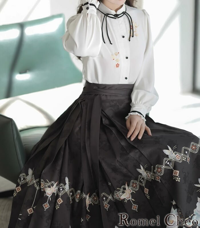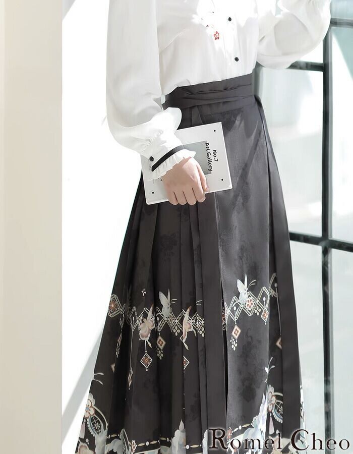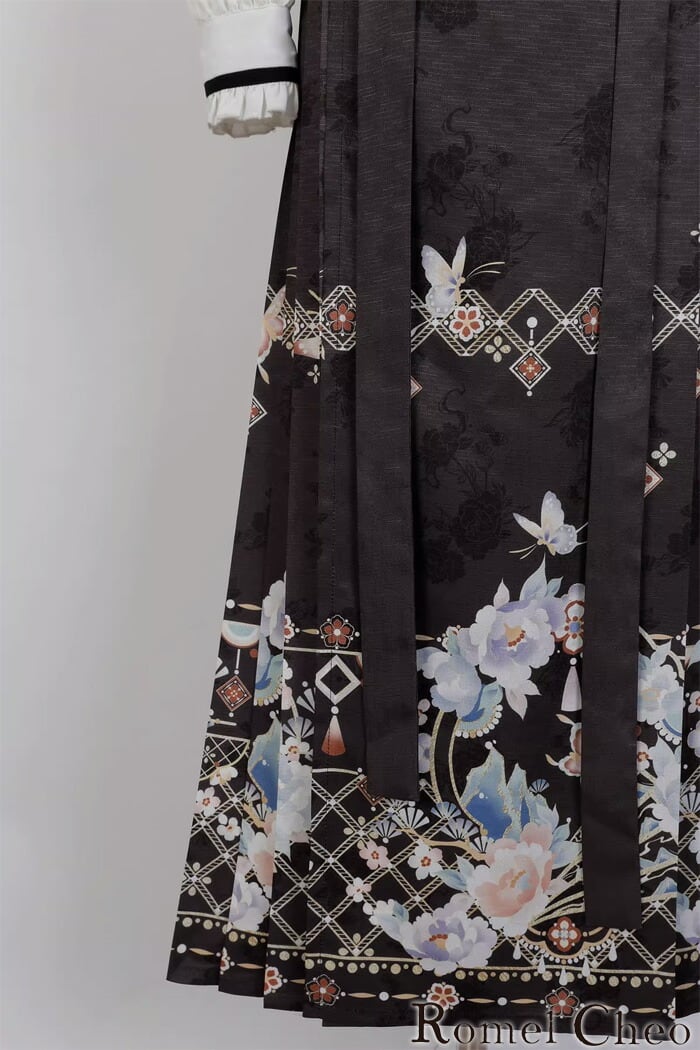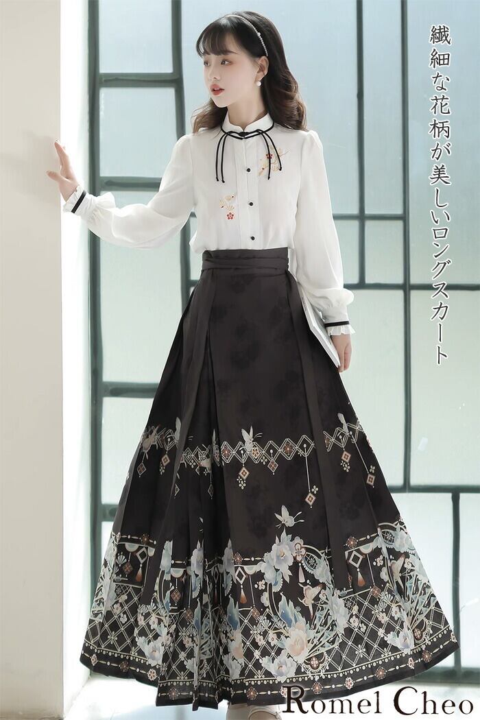【お支払い確認後20日以内発送】RomelCheo 花柄 馬面スカート ロングスカート 花柄ロングスカート プリーツスカート ロング丈スカート 和柄スカート Aライン ハイウエストスカート 大人可愛い 和モダン レディース モード系 ストリート きれいめ 原宿系 サロン系 ファッション ロメルチェオ