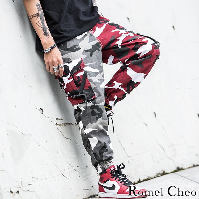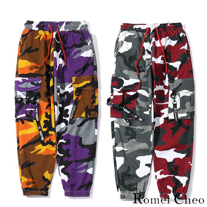 RomelCheo カモフラージュ 迷彩柄 パンツ カーゴ ジョガー ミリタリー ワーク メンズ レディース ユニセックス カラフル カジュアル ストリート ファッション ポケット スマホ 手ぶら ヒップホップ hiphop スポーティー ロメルチェオ