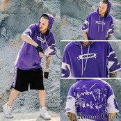 フロントにはロゴプリント、袖や背中部分にはアルファベット英文字や手形ペイントと、ストリートファッションにぴったりなカジュアルなデザインとなっております。