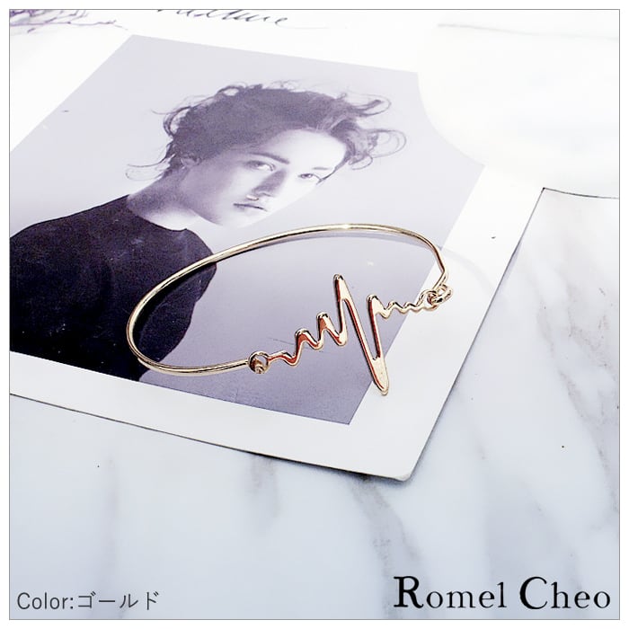 RomelCheo ブレスレット アクセサリー 原宿系 シンプル 華奢 ウェーブ 波型 メンズ レディース ユニセックス 腕輪 ペア おそろい カップル モチーフ 合金 メッキ 黒 おしゃれ きれいめ ロメルチェオ