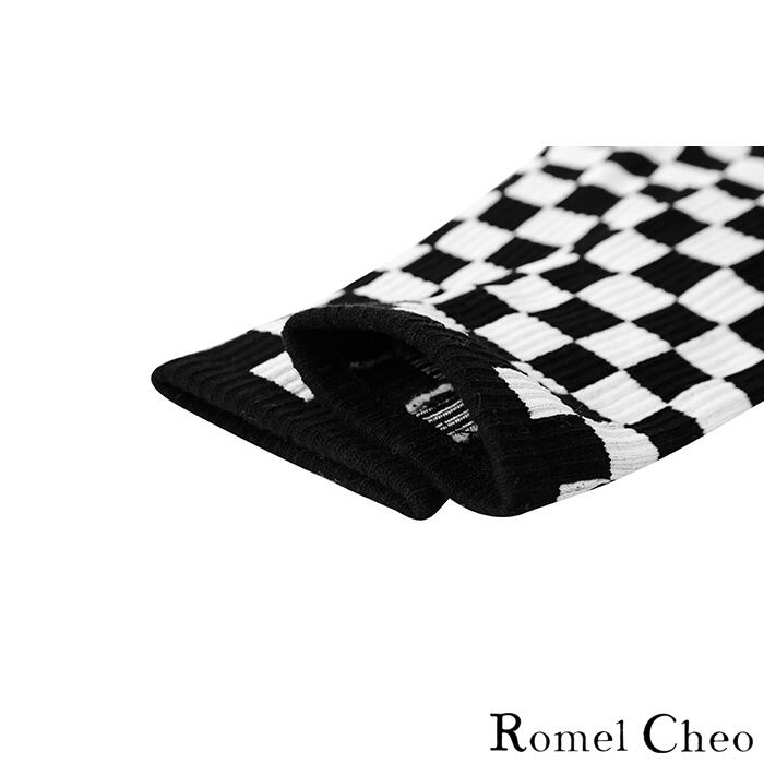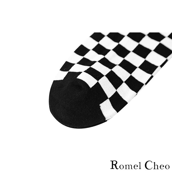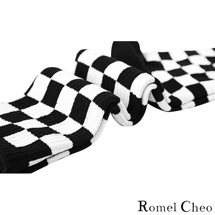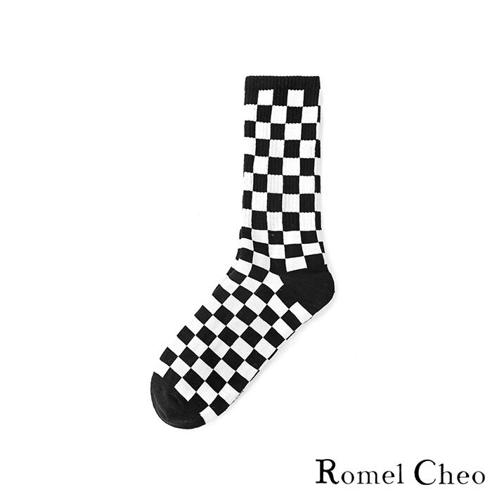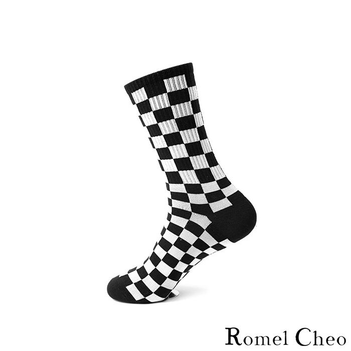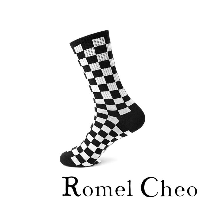 RomelCheo チェッカーフラッグ ソックス 靴下 市松模様 ミドル丈 メンズ レディース 綿 コットン スポーツ おしゃれ オールシーズン カジュアル ストリート系 原宿系 ファッション ヒップホップ hiphop ボード系 ロメルチェオ