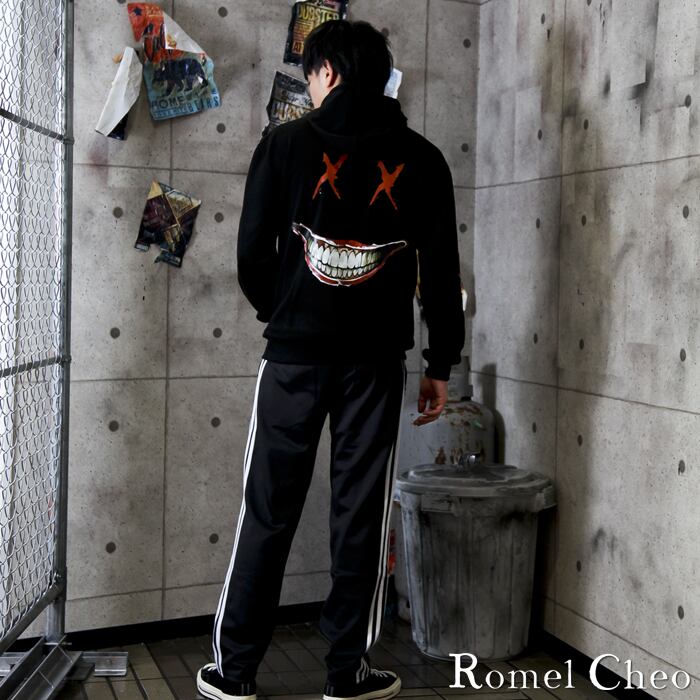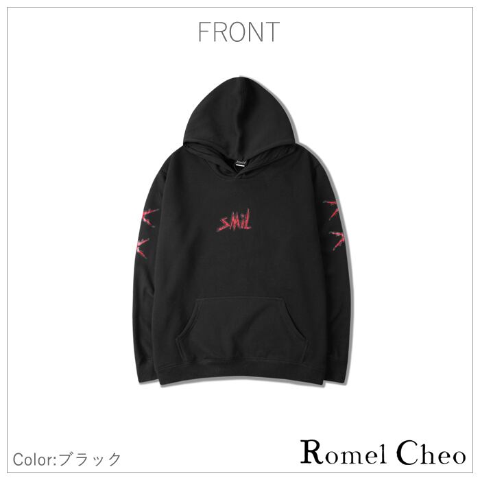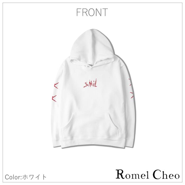 RomelCheo スマイル パーカー 裏シャギー メンズ レディース オーバーサイズ 秋冬 ストリート系 原宿系 ヒップホップ b系 ボード系 プルオーバー ロメルチェオ