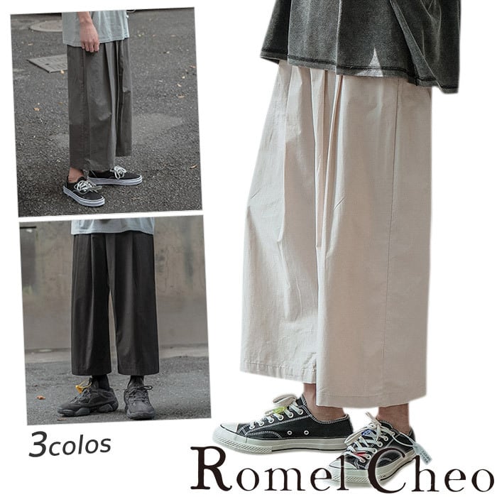 RomelCheo ワイドイージーパンツ テーパードパンツ アンクル丈 チノ 太め ボリューム ルーズシルエット リラックス ゆったり メンズ キレカジ ストリート サーフ ヒップホップ ファッション 原宿系 カジュアル ロメルチェオ