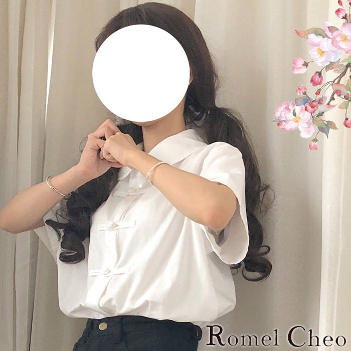 【お支払い確認後20日以内発送】RomelCheo チャイナ白シャツ チャイナシャツ ブラウス アジアンテイスト 半袖 チャイナボタン 和風 和服 華ロリ 原宿系 ストリート 青文字系 ファッション きれいめ ロリータ 病みかわ ゆめかわ ロリータ ロメルチェオ