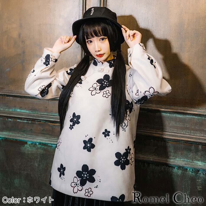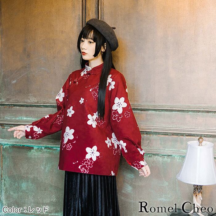 【お支払い確認後20日以内発送】 RomelCheo キルト チャイナシャツ チャイナ服 花柄 桜柄 和風 チャイナボタン レディース 秋冬 長袖 大人可愛い ゆめかわ かわいい 原宿系 ガーリー 森ガール ロリータ キルティング ロメルチェオ
