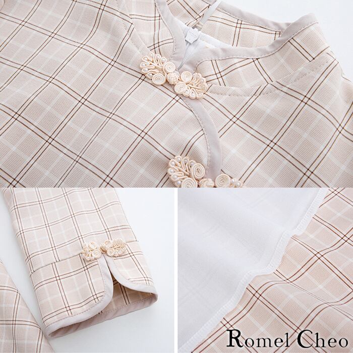 落ち着いたチェック柄とチャイナボタンの清楚なチャイナ風デザインとなっております。