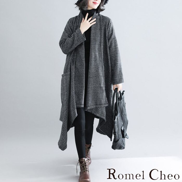 【お支払い確認後20日以内発送】 RomelCheo チェック柄ガウンコート レトロチェック グレンチェック トラッド ロング丈 ロングコート アウター シンプル 大人可愛い 大人カジュアル ナチュラル 韓国 原宿系 レディース 通勤 OL 青文字系 ファッション カジュアル ロメルチェオ