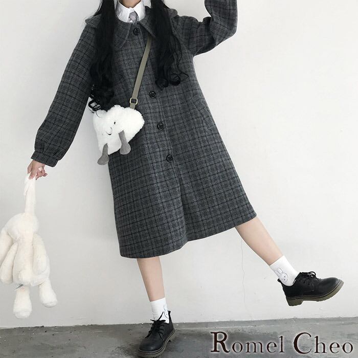 【お支払い確認後20日以内発送】 RomelCheo チェック柄チェスターコート チェックコート レディース ロリータ モード系 パンク アウター 長袖 カジュアル 可愛い きれいめ おしゃれ 夢かわ 病みかわ ファッション カジュアル ロメルチェオ
