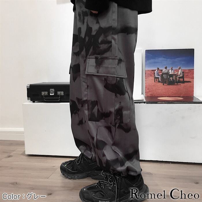 【お支払い確認後20日以内発送】RomelCheo モノトーン マーブル カーゴ パンツ 裾絞り 2way ワイド メンズ レディース ユニセックス ワーク 白黒 モノクロ ゆったり カジュアル ストリート ファッション ポケット ダンス ヒップホップ hiphop ロメルチェオ