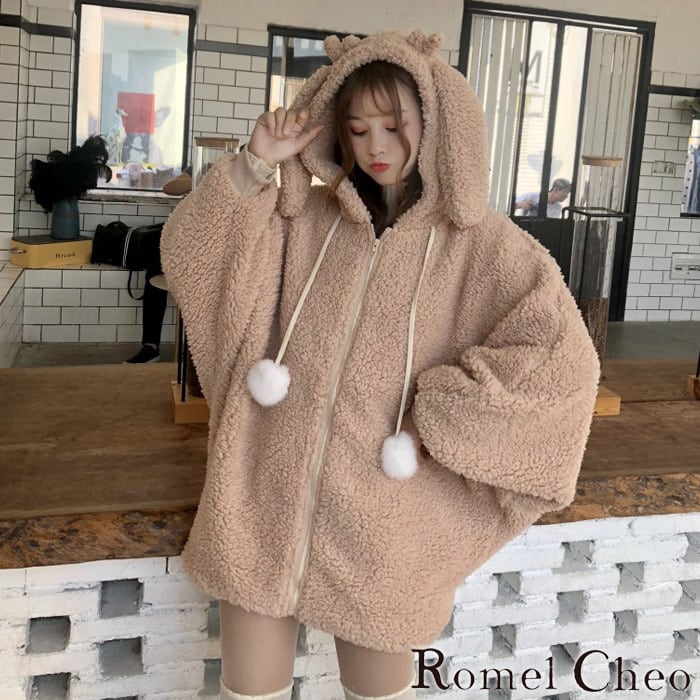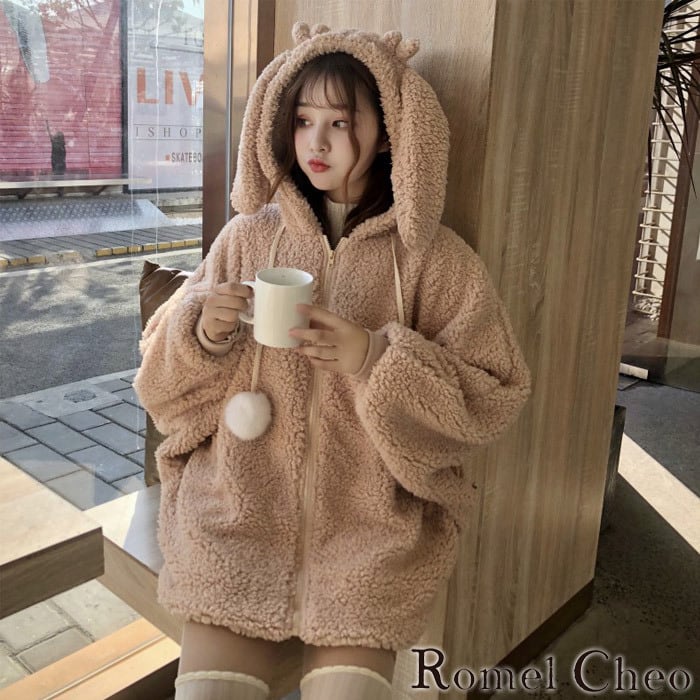 【お支払い確認後20日以内発送】 RomelCheo ボアうさ耳パーカー モコモコ もこもこパーカー うさき耳 オーバーサイズ ロリータ ガーリー 夢かわ 病みかわ 青文字系 森ガール 長袖 カジュアル かわいい 韓国 原宿系 ロメルチェオ