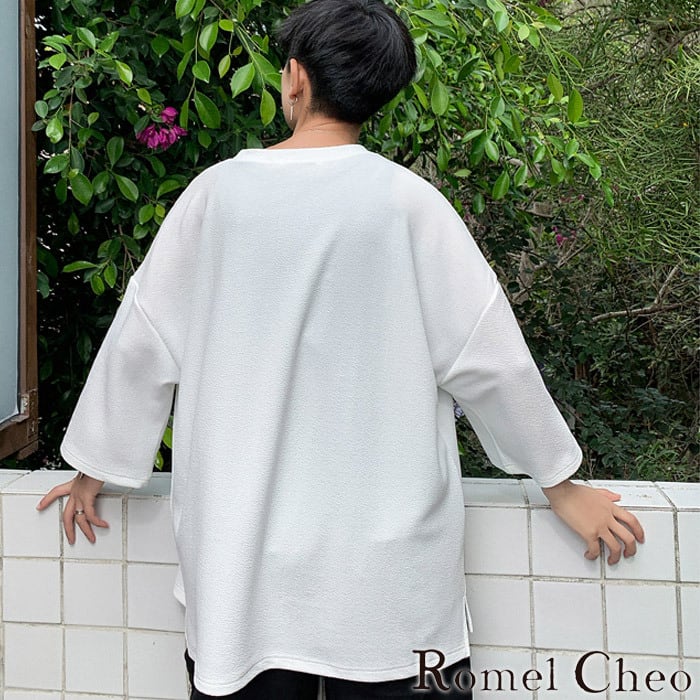 RomelCheo フレアスリーブビッグT 9分袖 半端袖 スウェットTシャツ カットソー ルーズシルエット オーバーサイズ ビッグシルエット ドロップショルダー BIG カジュアル ヒップホップ hiphop モード系 原宿系 ストリート ロメルチェオ