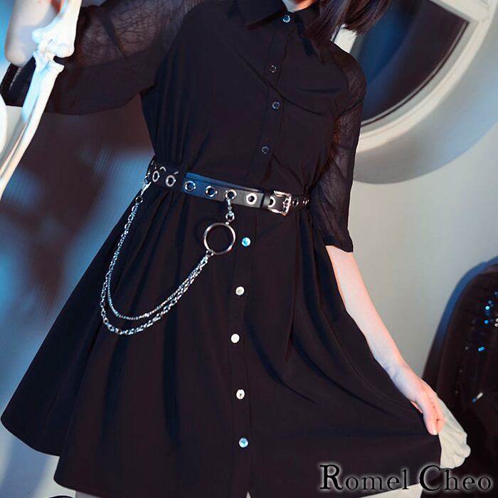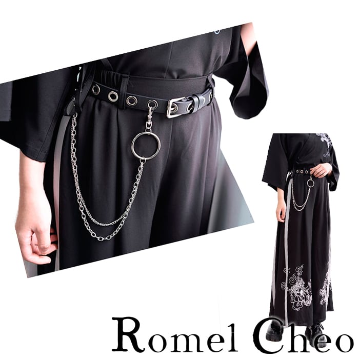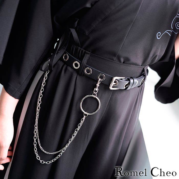 RomelCheo チェーン付き メタルリング ベルト 2連 鎖 装飾 ナスカン付 アクセサリー ストリート系 ロック パンク v系 ストリート系 ユニセックス レディース メンズ 男女兼用 ロメルチェオ