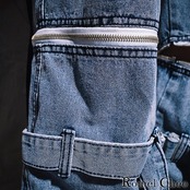 ジップを開くことでズボン丈を変えられる、ユニークなデザインです。