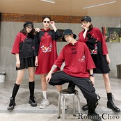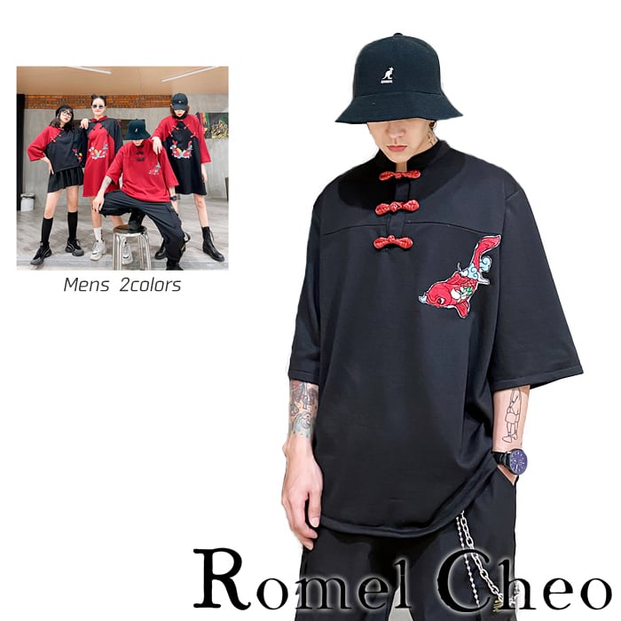 【お支払い確認後20日以内発送】 RomelCheo メンズ 赤黒 チャイナシャツ 和柄 エスニック アジアン 原宿系 ストリート系 カジュアル ファッション ペア リンク シミラー コーデ お揃い 色違い ロメルチェオ
