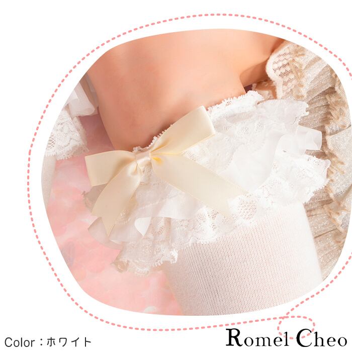 【お支払い確認後20日以内発送】RomelCheo ロリータ フリル ハイソックス 靴下 ソックス レース リボン レディース 無地 原宿系 青文字系 ガーリー スイート系 甘ロリ ゴスロリ 白 黒 かわいい ゆめかわ コットン ファッション ロメルチェオ