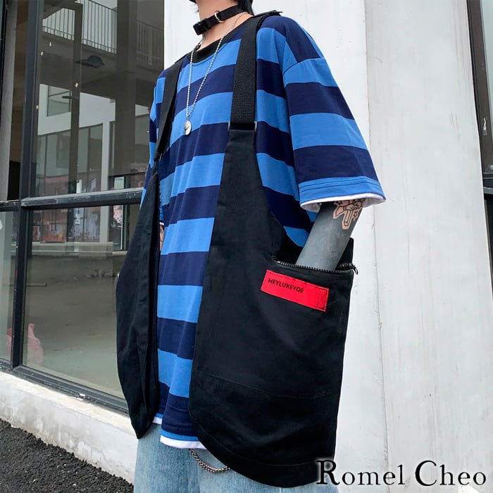 【お支払い確認後20日以内発送】RomelCheo ベスト ショルダー バッグ 2way 肩掛け 斜めがけ カバン 大きめ 大きい メンズ レディース ユニセックス 男女兼用 着る 黒 メッセンジャー 韓国 ファッション 原宿系 ストリート系 カジュアル ロメルチェオ