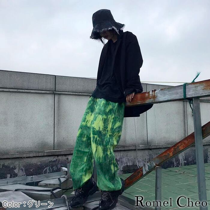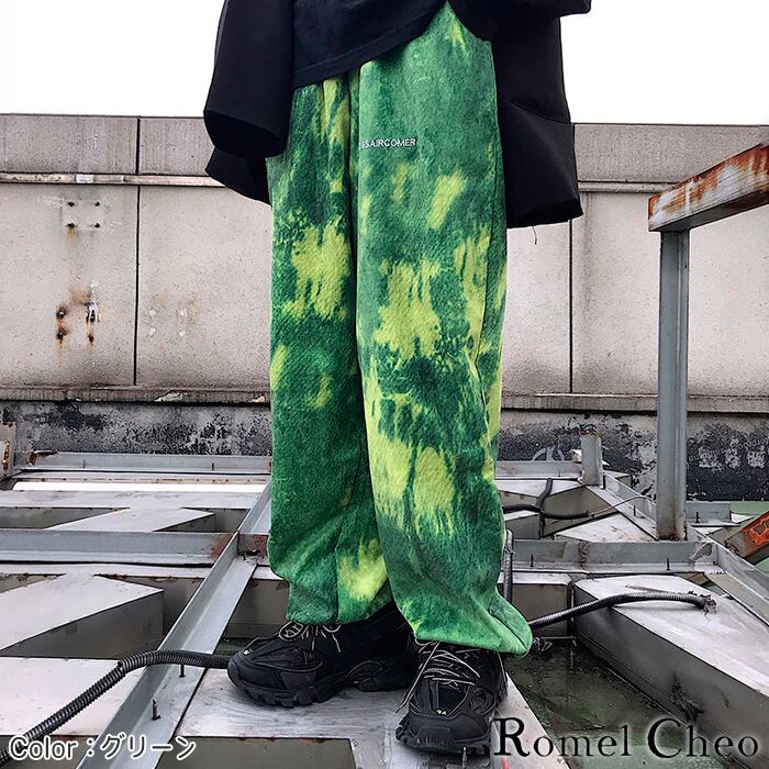 【お支払い確認後20日以内発送】RomelCheo 絞り染め風 ワイド パンツ プリント メンズ レディース ユニセックス イージー 錆色 個性的 ゆったり カジュアル ストリート ファッション 原宿系 韓国 服 スケーター オールシーズン ロメルチェオ