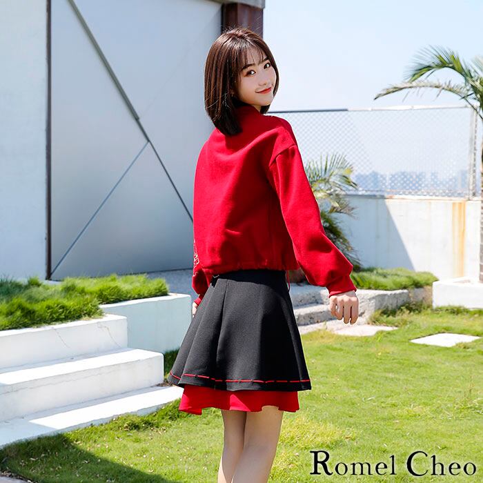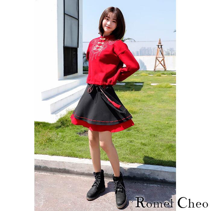 【お支払い確認後20日以内発送】RomelCheo モダン チャイニーズ フリース チャイナシャツ トップス 中華柄 チャイナ風 服 カットソー 赤 アジアン エスニックス 原宿系 青文字系 ガーリー 大人可愛い カジュアル ファッション 森ガール 漢服 普段着 ロメルチェオ