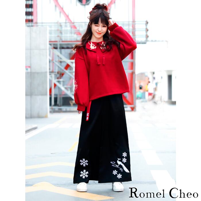 【お支払い確認後20日以内発送】RomelCheo 鯉柄 刺繍 森ガール トップス チャイナ風 ブラウス 襟付き トレーナー フリース レディース 和柄 大人可愛い エスニック アジアン ガーリー 原宿系 青文字系 カジュアル 漢服 普段着 ファッション ロメルチェオ
