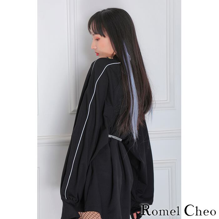 【お支払い確認後20日以内発送】RomelCheo スポーティー ライン チャイナ トップス シャツ レディース 黒 モノクロ 長袖 チャイナ風 アジアン エスニックス ポーツミックス 原宿系 青文字系 ガーリー 大人可愛い カジュアル ファッション 漢服 普段着 ロメルチェオ