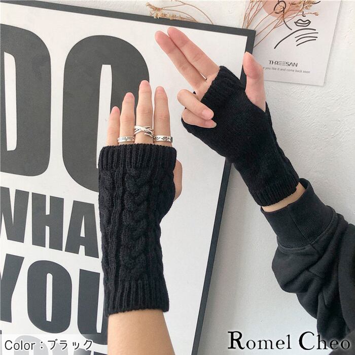 【お支払い確認後20日以内発送】RomelCheo ツイスト ニット ハンド ウォーマー 手首 指なし 手袋 指穴付き ケーブル メンズ レディース ショート アーム カバー 白 黒 赤 茶 無地 ストリート系 カジュアル ファッション 冷え対策 ロメルチェオ