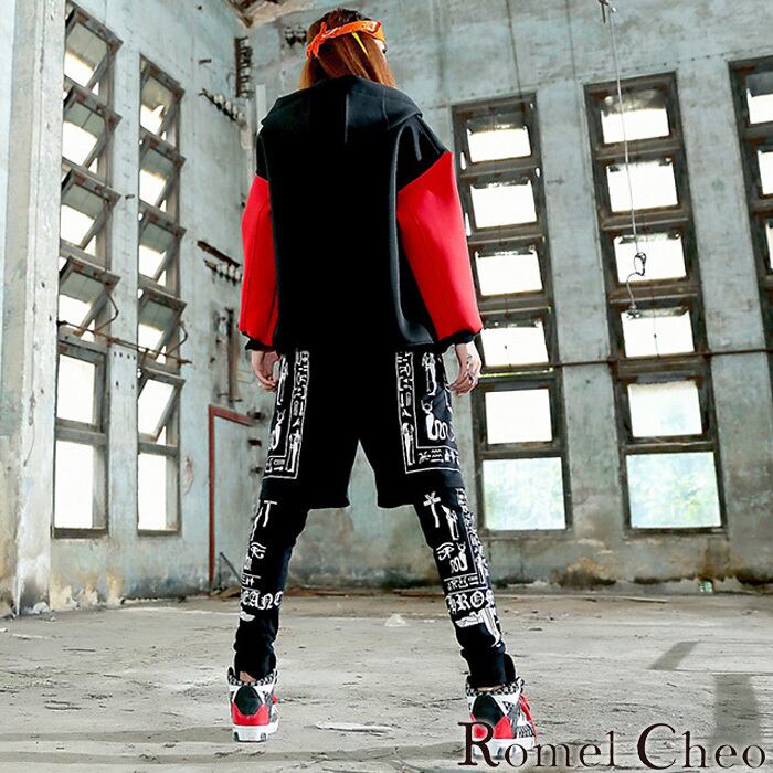 【お支払い確認後20日以内発送】RomelCheo ヒエログリフヒップホップパンツ レギンスパンツ レギパン ジョガーパンツ レイヤードパンツ ハーフパンツ グラフィック レディース モード系 ストリート ファッション パンク ロック ヒップホップ 原宿系 カジュアル ロメルチェオ