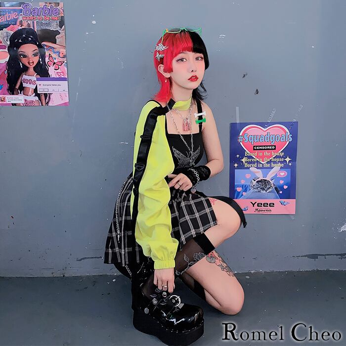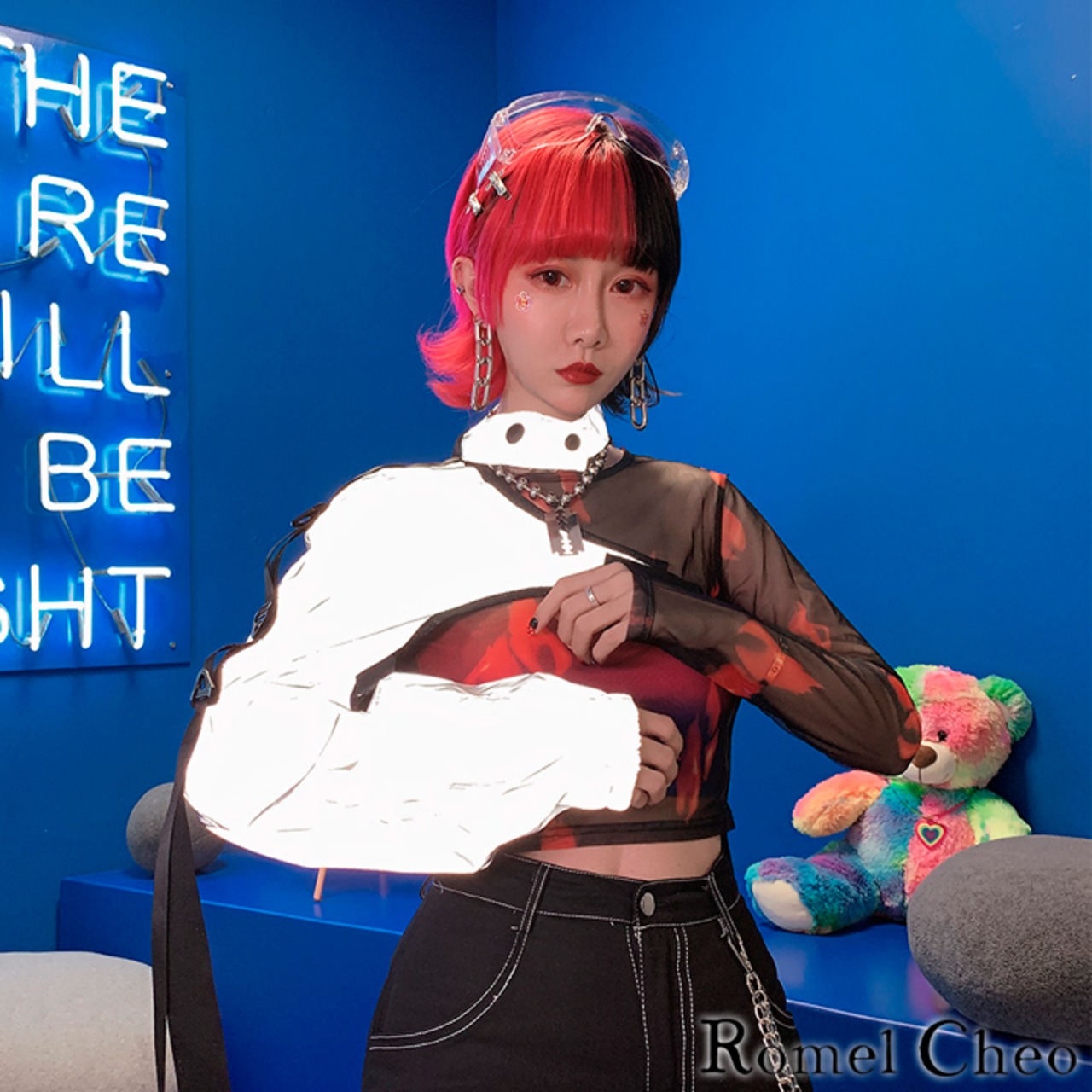 【お支払い確認後20日以内発送】RomelCheo ニア ヒューチャー オフショル ベスト 近未来風 ワンスリーブ 片袖 反射 リフレクター レディース メンズ ユニセックス 蛍光 アシンメトリー アシメ ホルターネック hiphop カジュアル 原宿系 y2k レトロ 個性派 ファッション ロメルチェオ