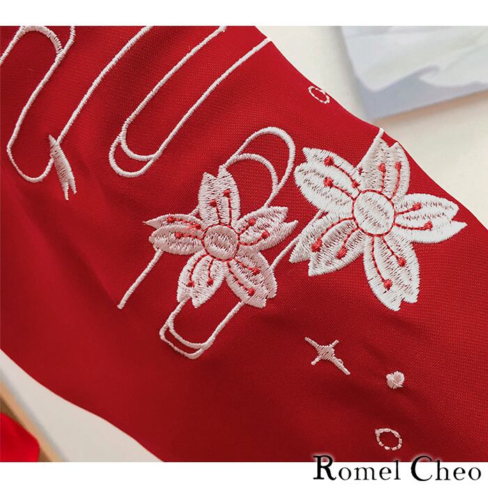【お支払い確認後20日以内発送】RomelCheo 桜 フレアスリーブ チャイナシャツ 花柄 刺繍 袖スリット レディース 和風 アジアン エスニックス 原宿系 青文字系 ガーリー 大人可愛い カジュアル ファッション 森ガール 漢服 普段着 ロメルチェオ