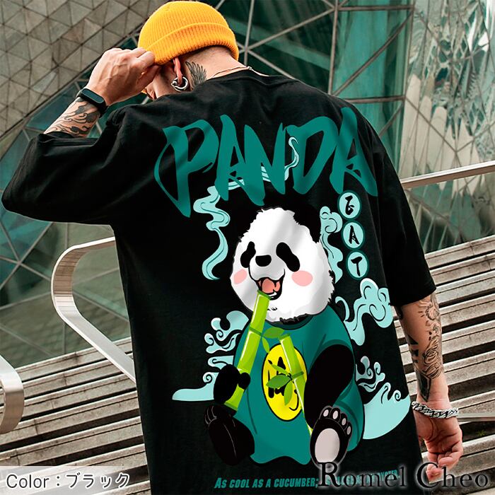 【お支払い確認後20日以内発送】RomelCheo 笹 パンダ tシャツ ビッグシルエット オーバーサイズ メンズ レディース ユニセックス hiphop アニマル プリント 半袖 中華風 アジアン ゆったり ストリート系 原宿系 カジュアル ダンス スケーター ファッション ロメルチェオ
