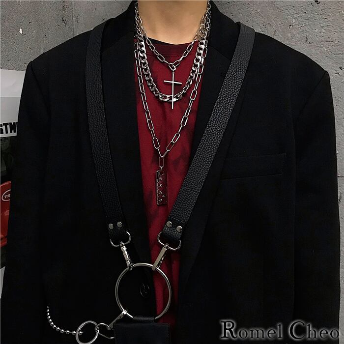 【お支払い確認後20日以内発送】RomelCheo クロス スケール チェーン ネックレス 十字架 定規 三連 重ねづけ ペンダント 鎖 メンズ レディース ユニセックス アクセサリー 韓国 hiphop ロック パンク モード系 原宿系 ストリート系 きれいめ キレカジ カジュアル 男女兼用 ロメルチェオ