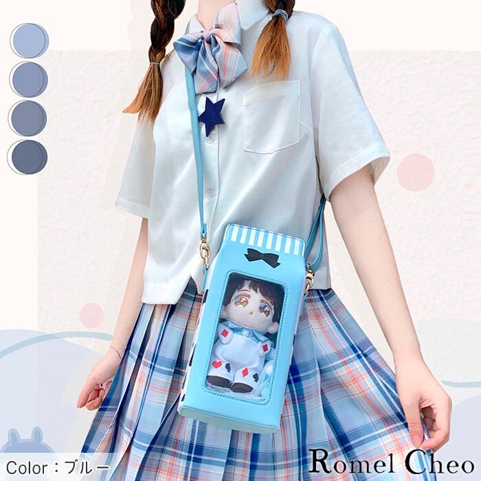 RomelCheo 牛乳パック 痛 ポシェット ショルダー バッグ 斜め掛け ミルクカートン 苺ミルク ストロベリー 牛柄 イチゴ柄 コレクション ケース レディース サブ ライブ ゆめかわいい 原宿系 ロリータ ガーリー ファッション オタク女子 オタ活 ロメルチェオ