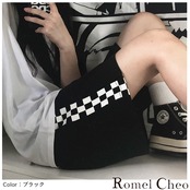 【お支払い確認後20日以内発送】RomelCheo サイドチェッカーフラッグハーフパンツ 短パン ショートパンツ ショーツ イージーパンツ サイドライン ゆったり メンズ レディース モード系 ストリート アウトドア 個性的 原宿系 青文字系 カジュアル ファッション ロメルチェオ
