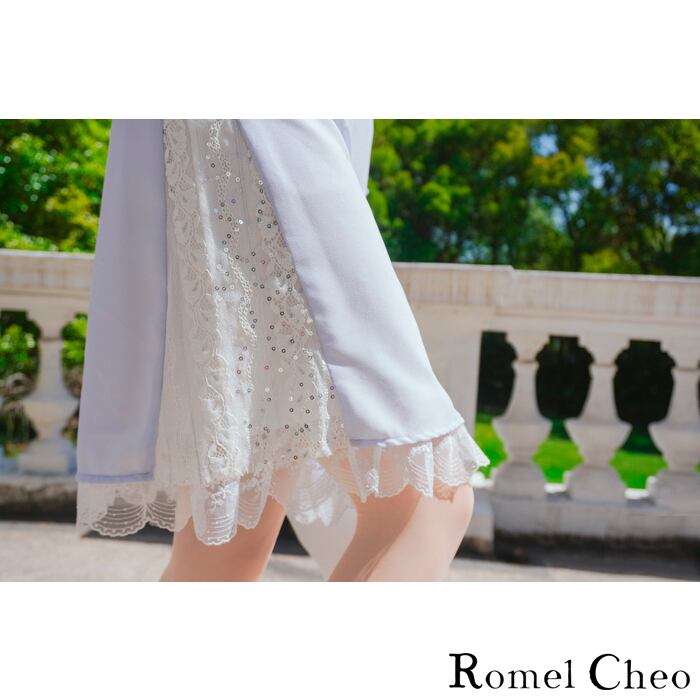 スカートサイド部分のスリットは、レース切り替え。スパンコールのキラキラ感もGOOD!