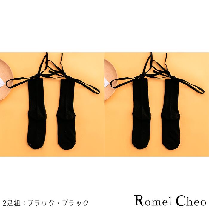 【お支払い確認後20日以内発送】RomelCheo レースアップ コットン ソックス 編み上げ クルー 靴下 リボン レディース 綿 無地 薄手 オールシーズン ロリータ 原宿系 青文字系 ガーリー 白 黒 かわいい 制服コーデ 森ガール 大人可愛い ファッション ロメルチェオ