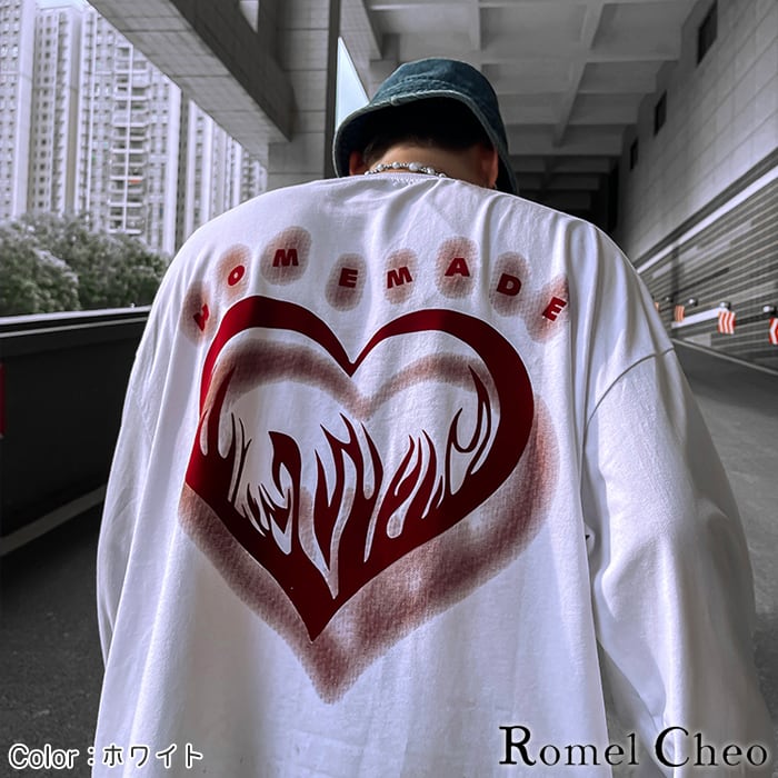 【お支払い確認後20日以内発送】RomelCheo ダーク ホラー ハート 長袖 tシャツ ロング丈 ロンt イラスト プリント メンズ レディース ビッグシルエット ゆったり ストリート系 原宿系 b系 個性的 個性派 ロック パンク ヒップホップ スケーター 病みかわ カジュアル ファッション ロメルチェオ