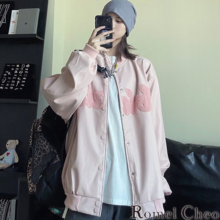 【お支払い確認後20日以内発送】RomelCheo ボアレザージャケット スタジャン ボンバージャケット バーシティジャケット オーバーサイズ ボリューム袖 ゆったり ビッグサイズ メンズ レディース モード系 ストリート 個性的 原宿系 青文字系 カジュアル ファッション ロメルチェオ