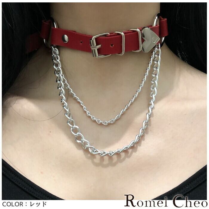 【お支払い確認後20日以内発送】RomelCheo ハート付きチョーカー チェーンチョーカー ネックレス チョーカーアクセサリーネックレス オシャレ 甘辛MIX 可愛い パンク ゴスロリ ゴシック 病みかわ レディース モード系 ストリート 原宿系 青文字系