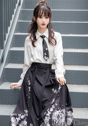 【お支払い確認後20日以内発送】RomelCheo 現代漢服バンブーバタフライセット セットアップコーデ シャツ 長袖 ブラウス スカート ロングスカート ハイウエスト ロング丈 マキシ丈 レディース ネクタイ モード系 ファッション 原宿系 青文字系 カジュアル ファッション ロメルチェオ