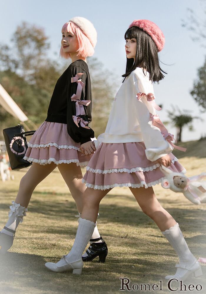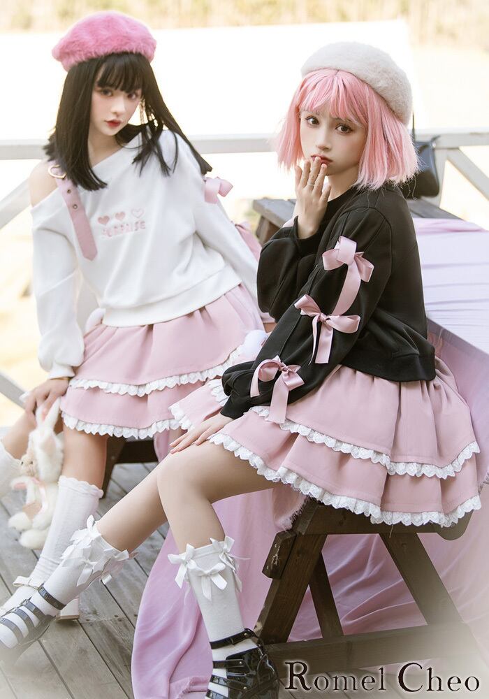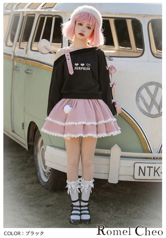 【お支払い確認後20日以内発送】RomelCheo 量産型ワンオフショルトップス ワンオフショルダー リボン スウェット トレーナー 変形 アシメデザイン カットソー ロリータ クラロリ ゆめかわいい 小悪魔 レディース モード系 ファッション 原宿系 青文字系 カジュアル ファッション ロメルチェオ