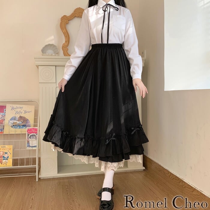 【お支払い確認後20日以内発送】RomelCheo ペチコート付きフェアリーケーキスカート フリルスカート ハイウエスト フレアスカート Aライン ロング ミモレ丈 ロリータ クラロリ ゆめかわいい 姫ロリ レディース モード系 ファッション 原宿系 青文字系 カジュアル ファッション ロメルチェオ
