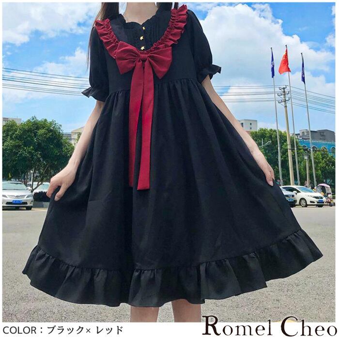 【お支払い確認後20日以内発送】RomelCheo 地雷系フリルリボンワンピース ロリータワンピ リボンワンピ フリルワンピ オーバーサイズ ゆったり 半袖 ハイウエスト ロリータ 病みかわ 甘ロリ レディース モード系 ファッション 原宿系 青文字系 カジュアル ファッション ロメルチェオ