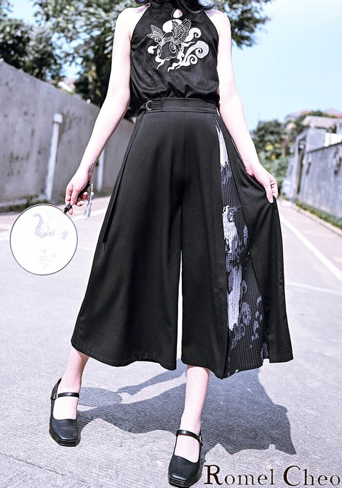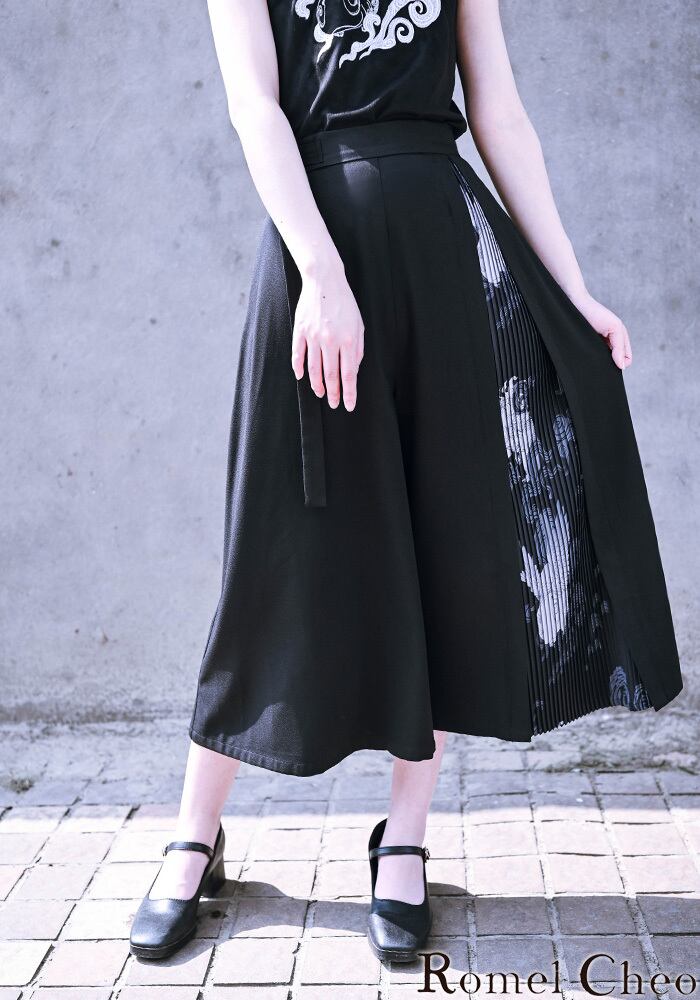 【お支払い確認後20日以内発送】RomelCheo 妖怪プリーツ切替スカーチョ スカンツ ボリュームガウチョ ワイドレッグパンツ ワイドパンツ ボリュームパンツ ビッグシルエット オーバーサイズ 切り替え 和風 カジュアル レディース モード系 ストリート 原宿系 青文字系 ファッション ロメルチェオ
