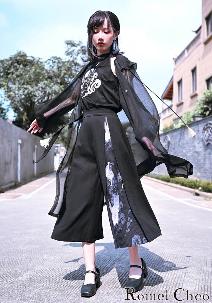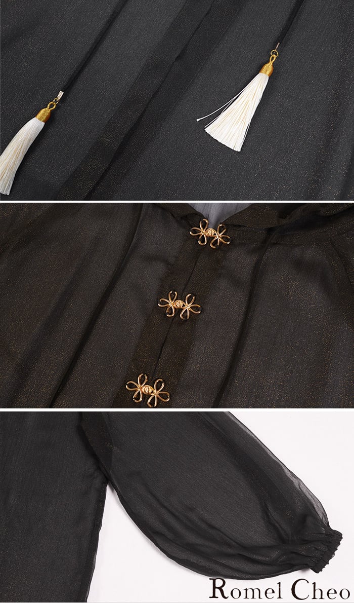 【お支払い確認後20日以内発送】RomelCheo チャイナ風シースルーロングパーカーカーデ ロングカーディガン ロングパーカー シースルーパーカー フェミニン エスニック 個性的 民族風 和風 レディース モード系 ファッション 森ガール 原宿系 青文字系 カジュアル ファッション ロメルチェオ